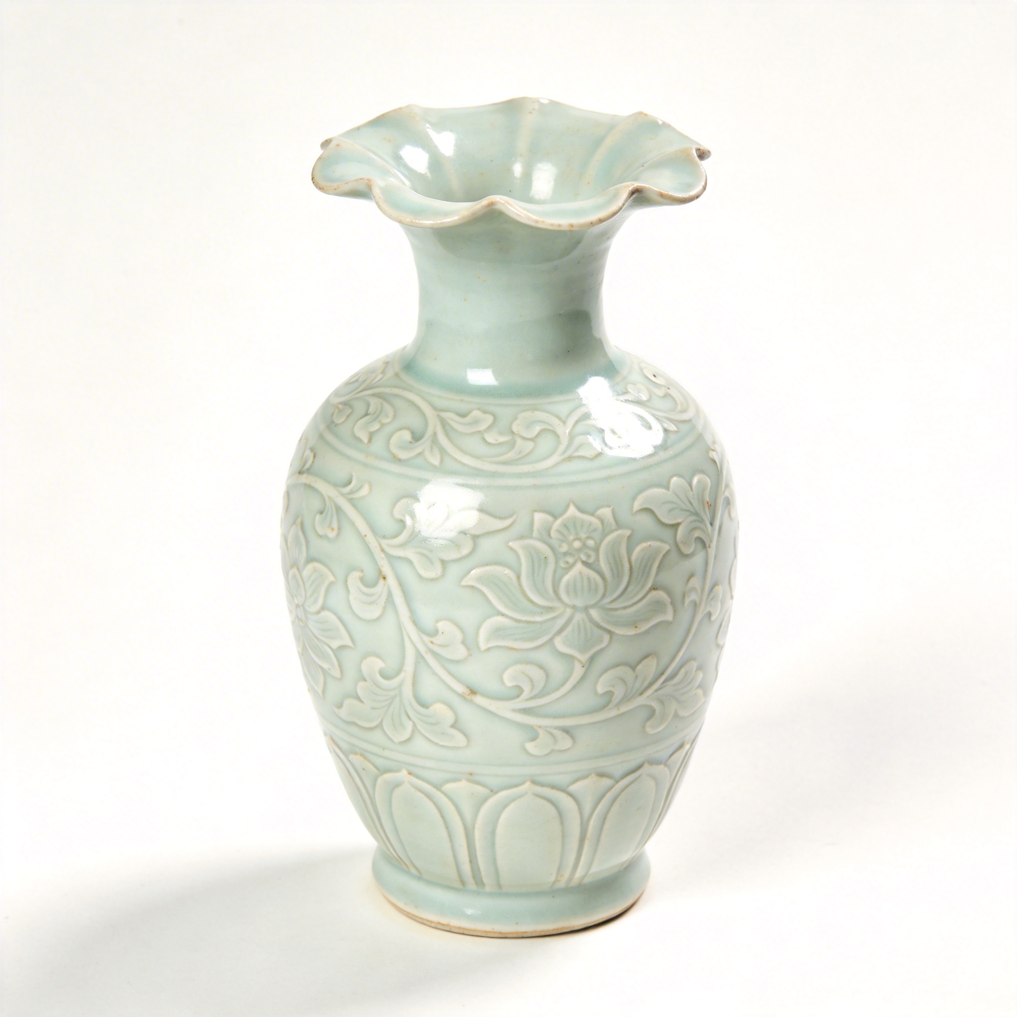宋真宗以年号"景德"赐名,创烧影青(青白瓷),有"饶玉"之誉。影青瓷又称青白瓷,是宋代景德镇窑工仿效青白玉的质感而创烧的新瓷种。釉色介于青白之间,青中闪白,白中透青,釉面明澈丽洁,胎质细密,叩之声音清脆悦耳。